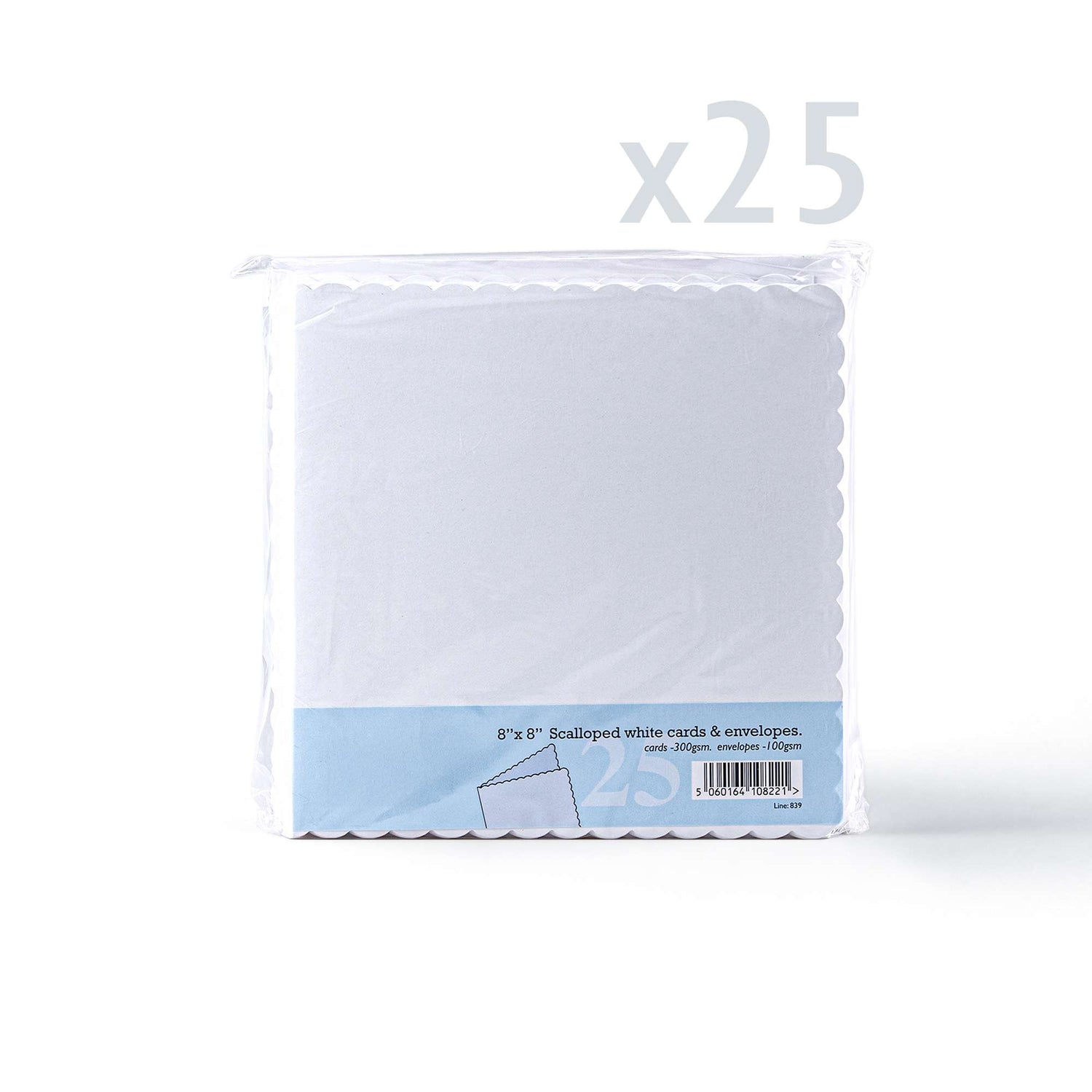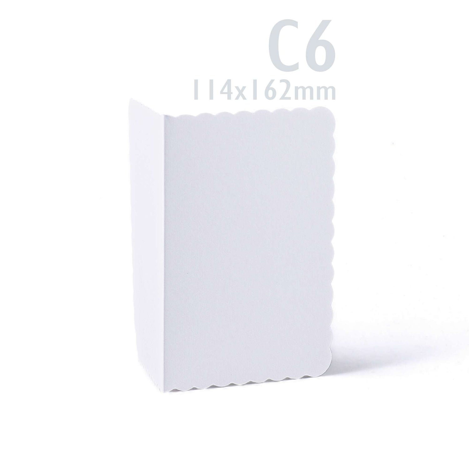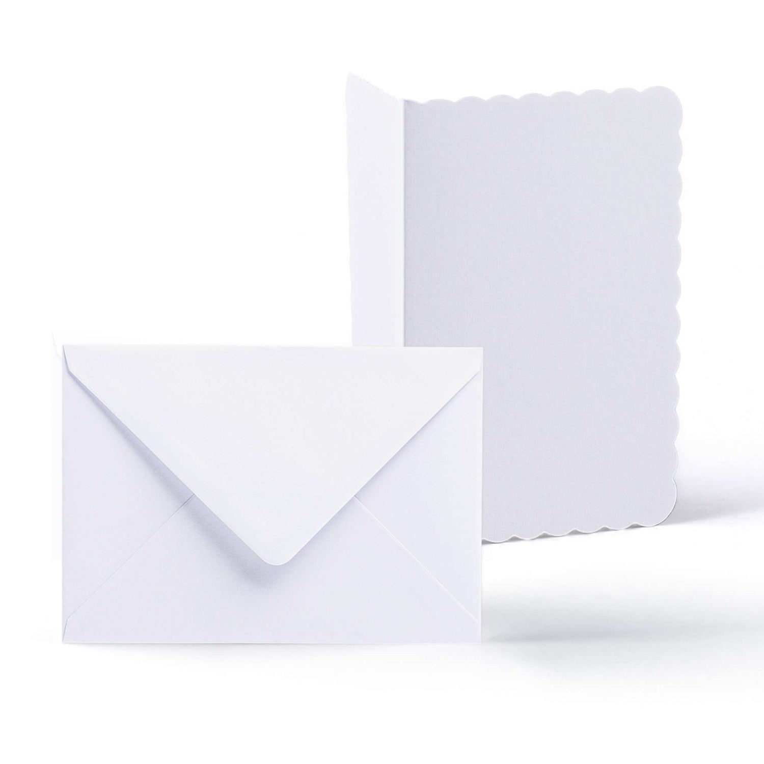 Elegante set met witte kaarten met golvende rand (300 g/m²) en bijpassende enveloppen (100 g/m²).